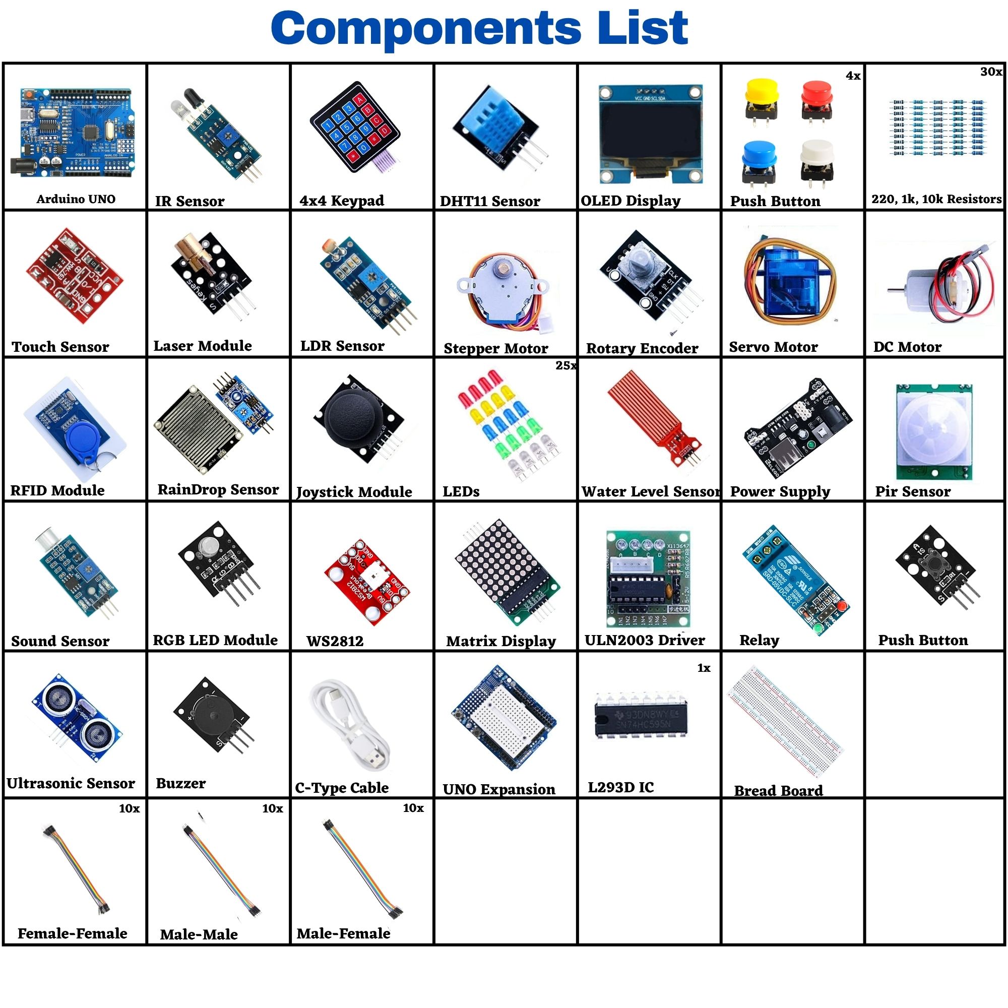 Includes 42+ sensors, modules & components